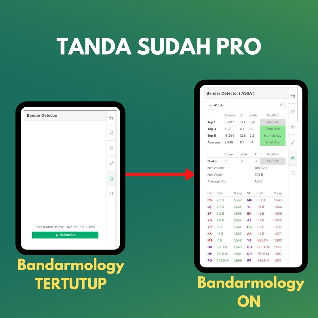 Menggunakan aplikasi ini akan membuat anda tahu bahwa saham sedang diakumulasi oleh bandar melalui notifikasi. Ini belum termasuk etf dan mutual fund. Bandar detector adalah sebuah tools yang dapat menganalisa apakah suatu saham sedang dalam akumulasi pembelian atau distribusi penjualan. Ini adalah aplikasi saham yang menyediakan informasi pasar modal indonesia.